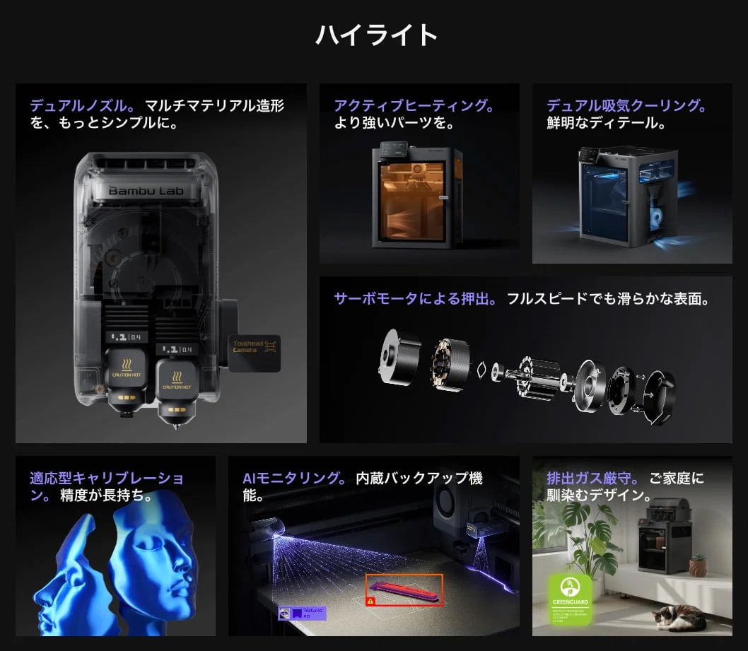 ● エクストルーダーモーター:Bambu Lab 高精度永久磁石同期モーター