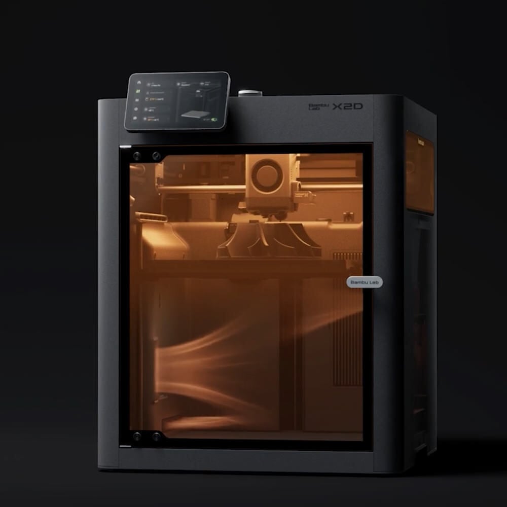 Bambu Labの最新3Dプリンター「Bambu Lab X2D」は、デュアルノズルによる高品質造形と高速プリントを両立した次世代モデルです。従来の単一ノズルでは難しかったマルチマテリアル造形を、よりシンプルかつ高精度に実現。さらに最大1000mm/sクラスの高速出力や、65℃対応の密閉チャンバーにより、ABSやナイロンなどのエンジニアリング材料にも安定して対応します。AMSとの連携によりマルチカラー造形も簡単に行え、試作から実用部品製造まで幅広く活躍する高性能3Dプリンターです。